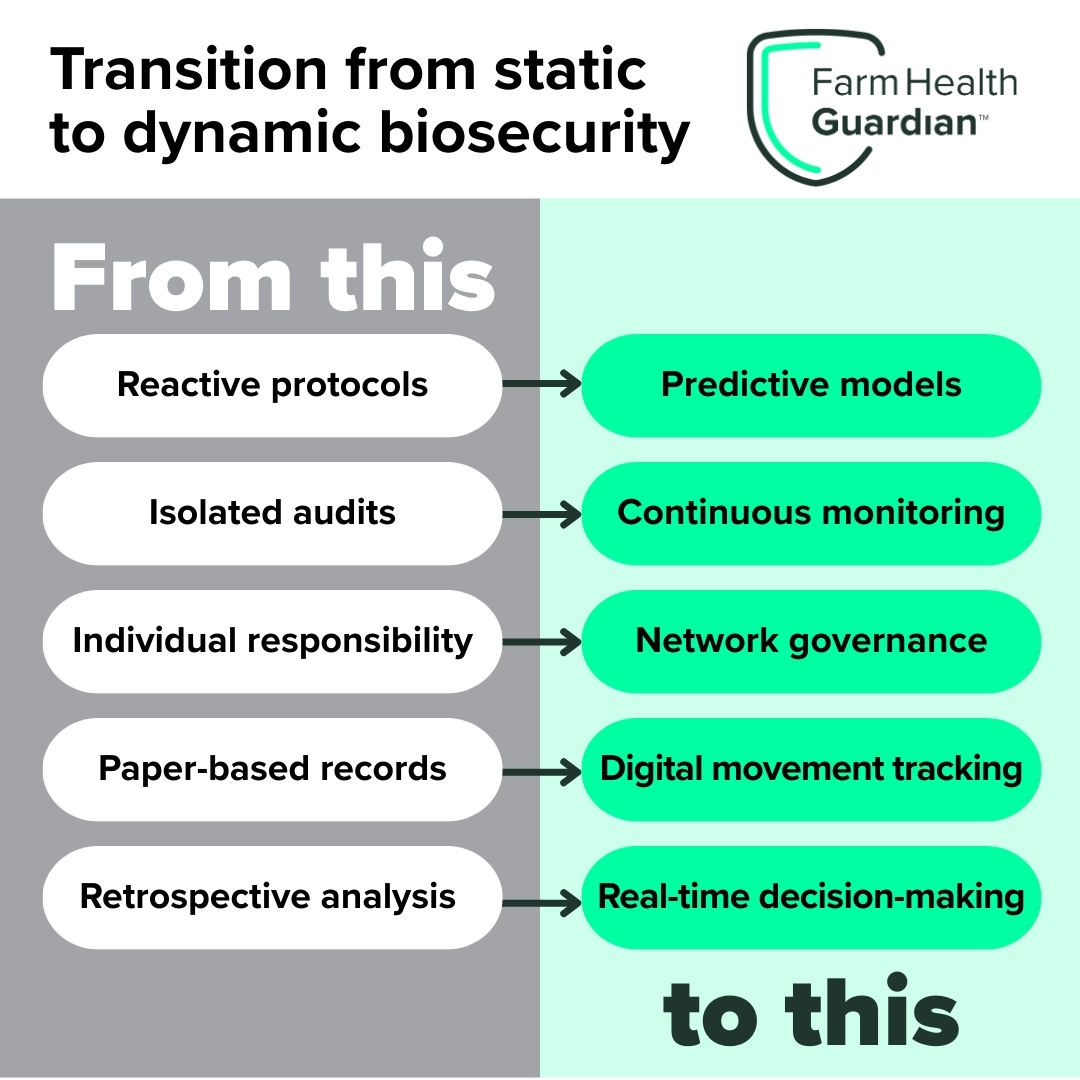 Controlling pathogen movements throughout the entire value chain: Toward a dynamic, collective biosecurity strategy in European swine systems, discusses that to be effective, biosecurity must move beyond a prescriptive checklist toward a dynamic process of continuous threat recognition, adapted to specific contexts and evolving circumstances.2