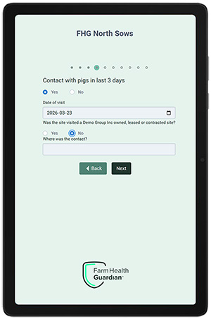 For farms that want a simple entry system at the door, the Farm Visitor Logbook provides a physical tablet interface where visitors can check in and complete required biosecurity information before entering the farm.
