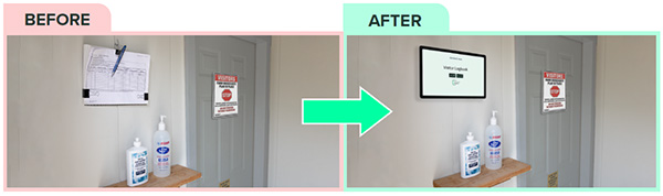 Install the Farm Visitor Logbook at the entrance to the barn, or wherever visitors are required to sign in. The device can be placed on a desk or wall mounted.